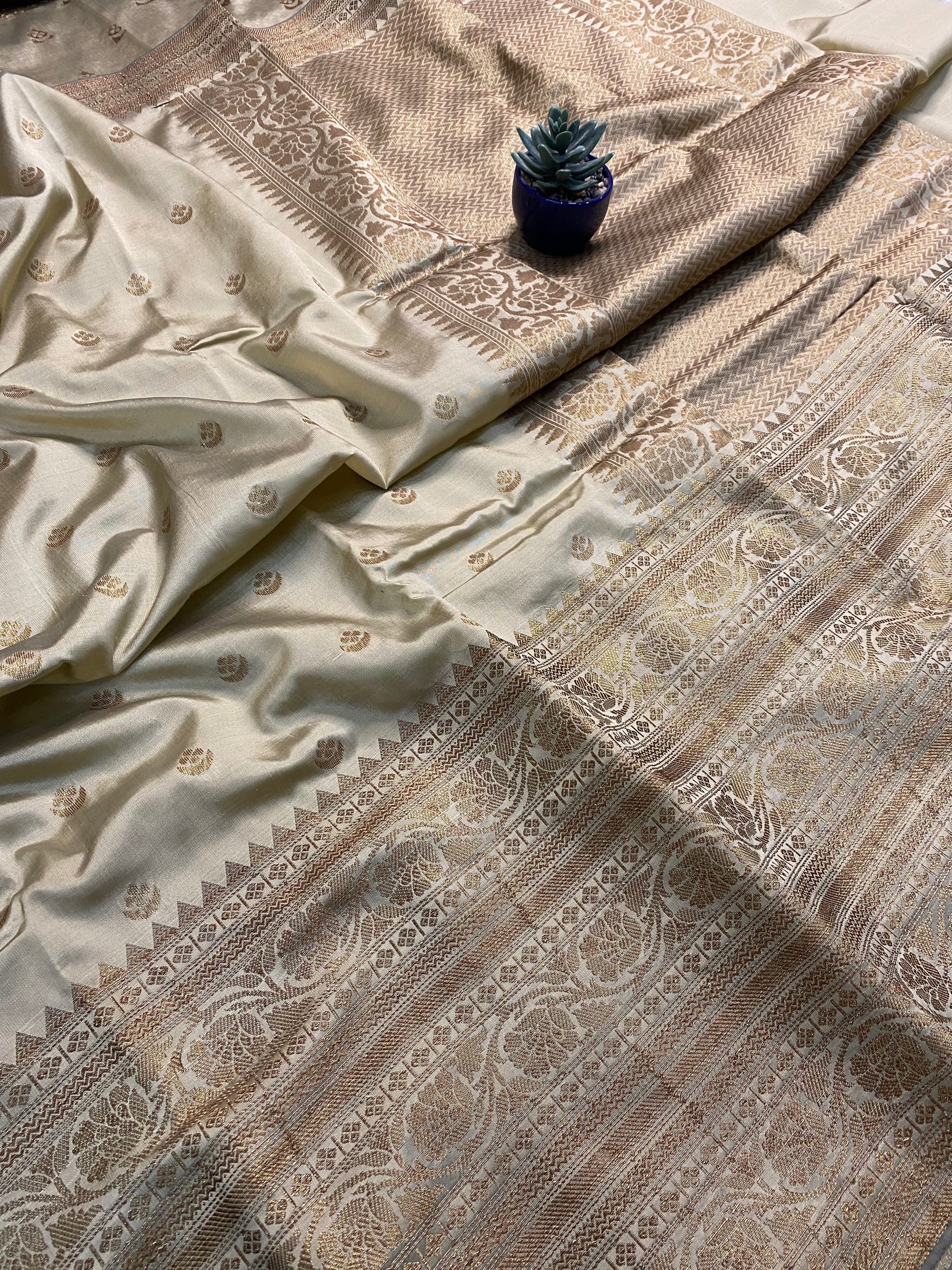 "Experience the luxurious feel of our Banarasi Soft Silk Saree. Handcrafted with Banarasi art silk, this elegant saree showcases the finest Indian weaving techniques. Perfect for any occasion, this saree exudes sophistication and style."