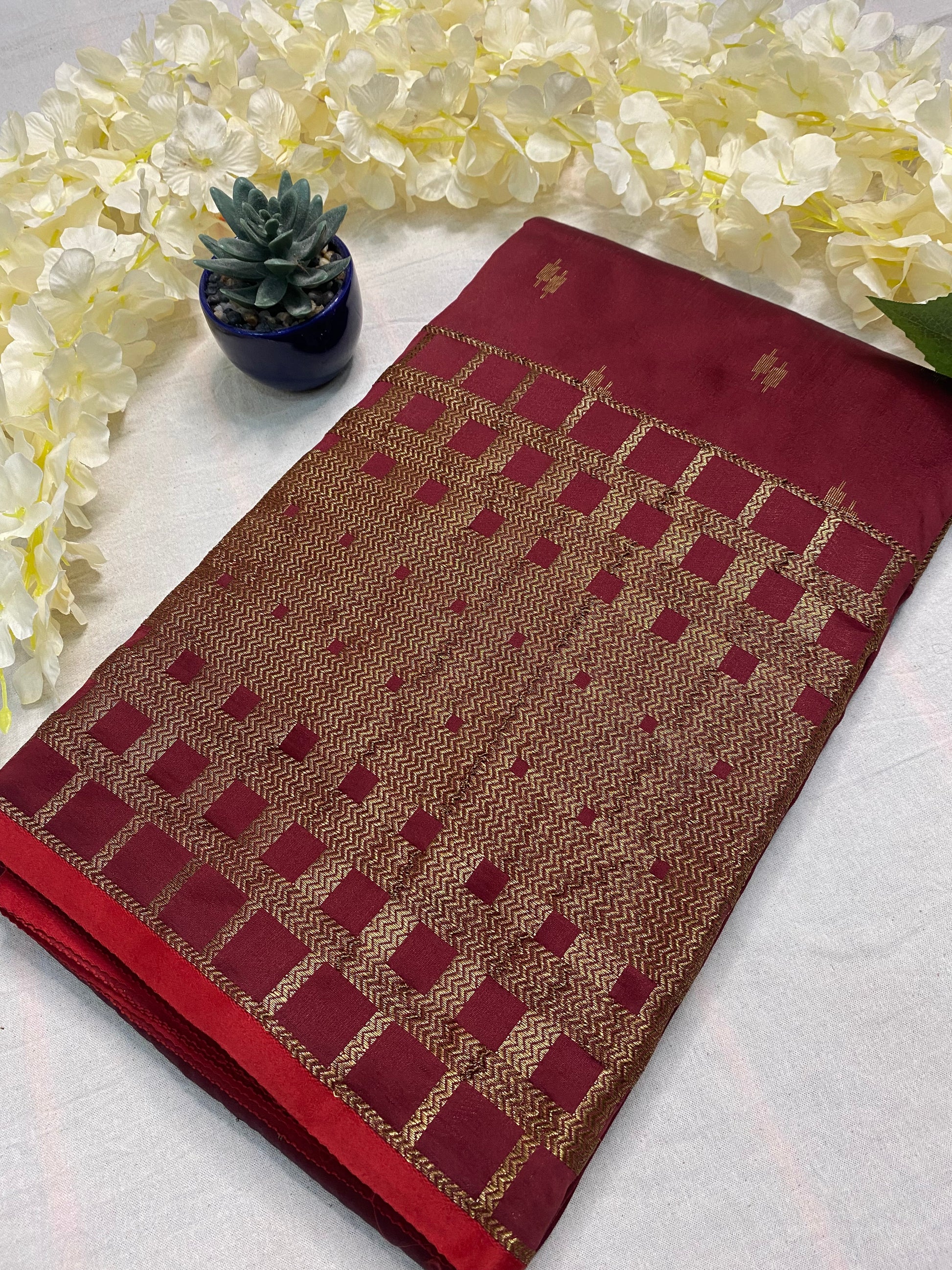 "Experience the luxurious feel of our Banarasi Soft Silk Saree. Handcrafted with Banarasi art silk, this elegant saree showcases the finest Indian weaving techniques. Perfect for any occasion, this saree exudes sophistication and style."