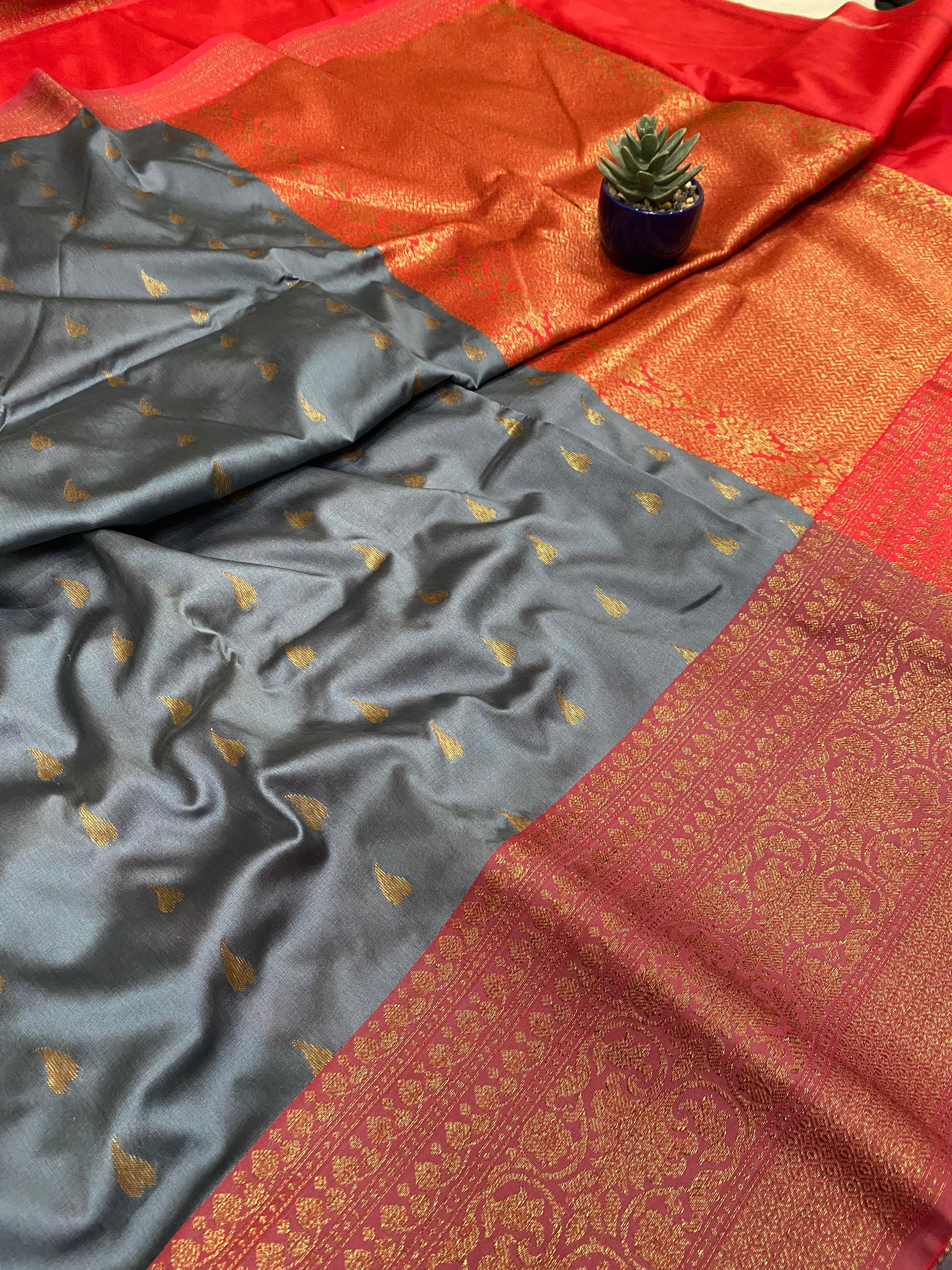 "Experience the luxurious feel of our Banarasi Soft Silk Saree. Handcrafted with Banarasi art silk, this elegant saree showcases the finest Indian weaving techniques. Perfect for any occasion, this saree exudes sophistication and style."