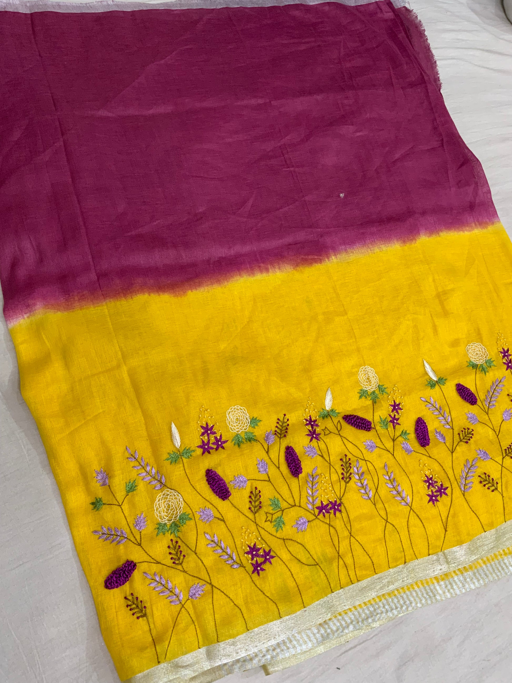 Linen Saree with Handwork Embroidery ( 2D Colour )