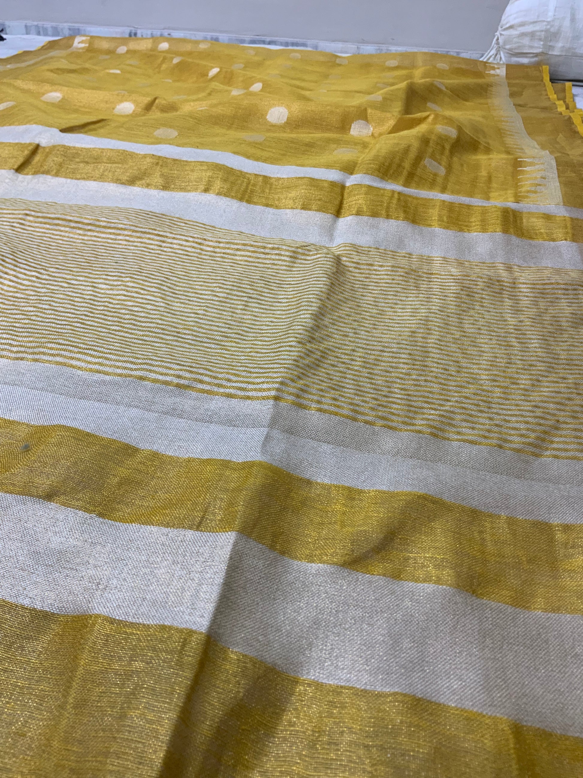 Linen Saree with Zari Patta Doller Booty
