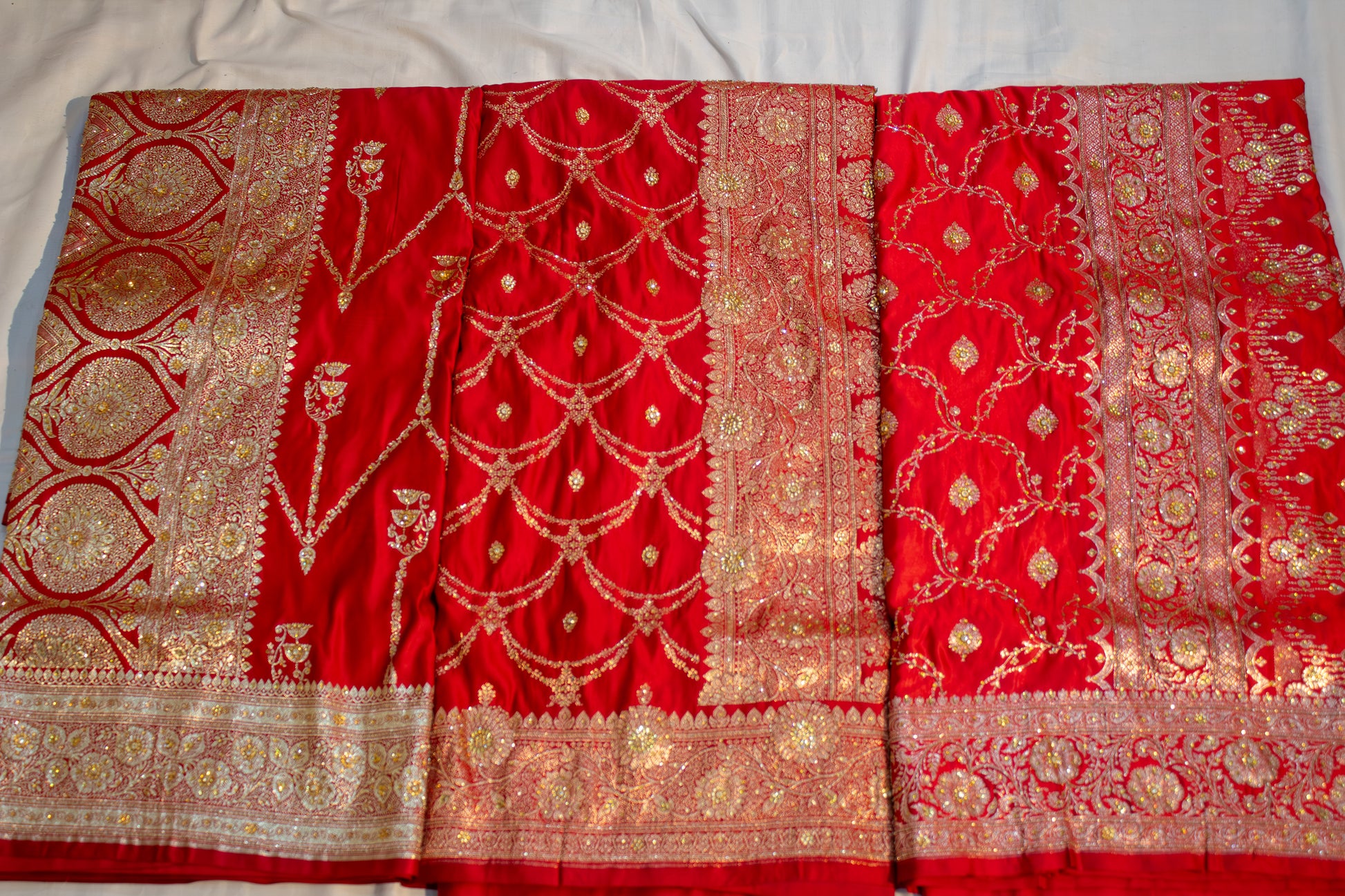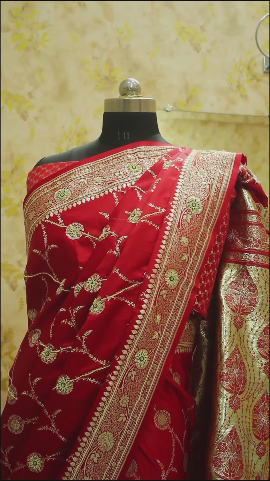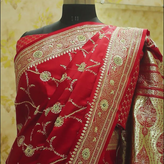 Royal Red Banarasi Mashru Saree – Bridal & Festive Wear