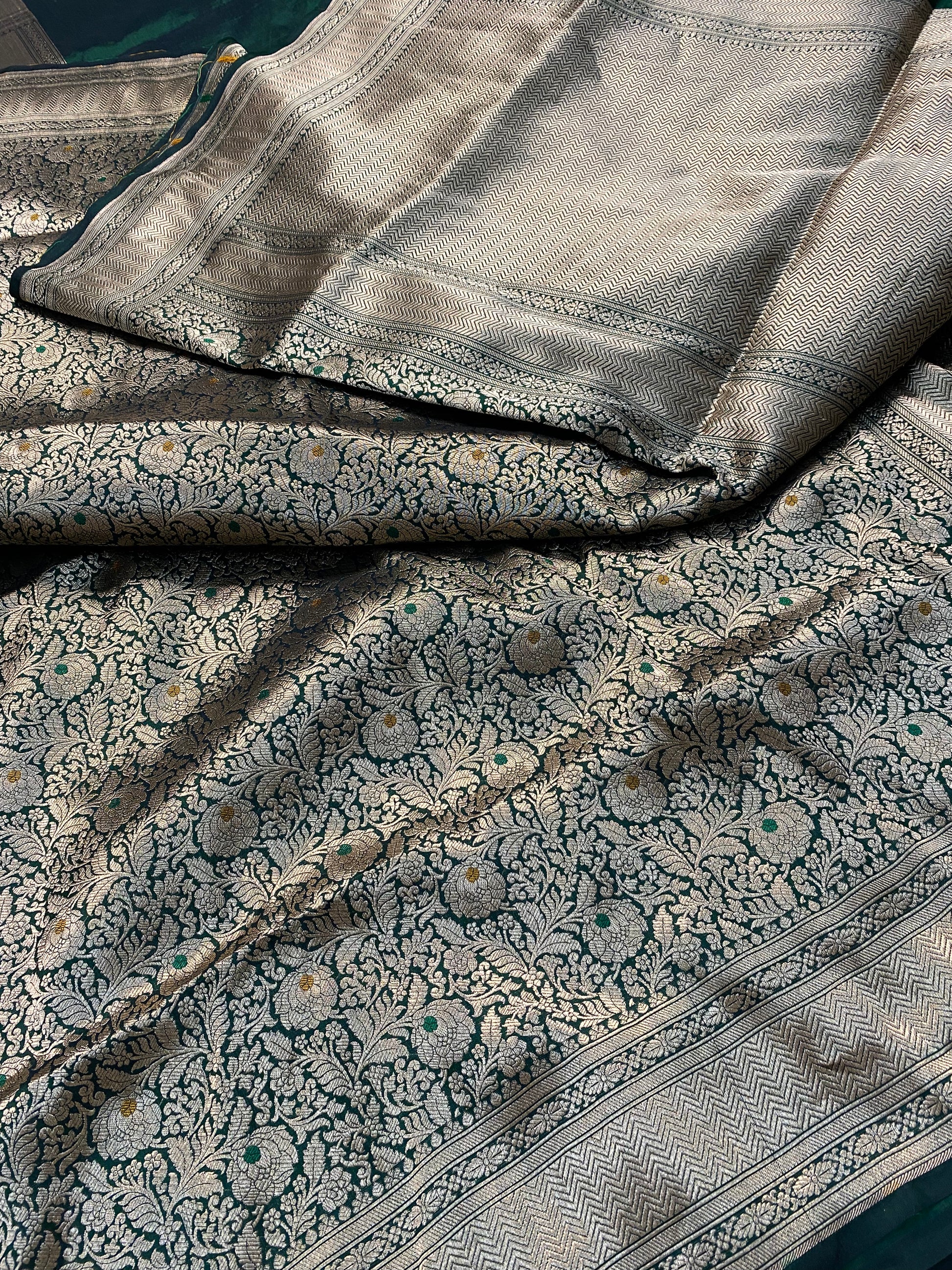 A Banarasi brocade saree is one of the most luxurious and iconic traditional sarees in India, known for its intricate weaving, rich texture, and opulent look. Here’s a quick overview:
